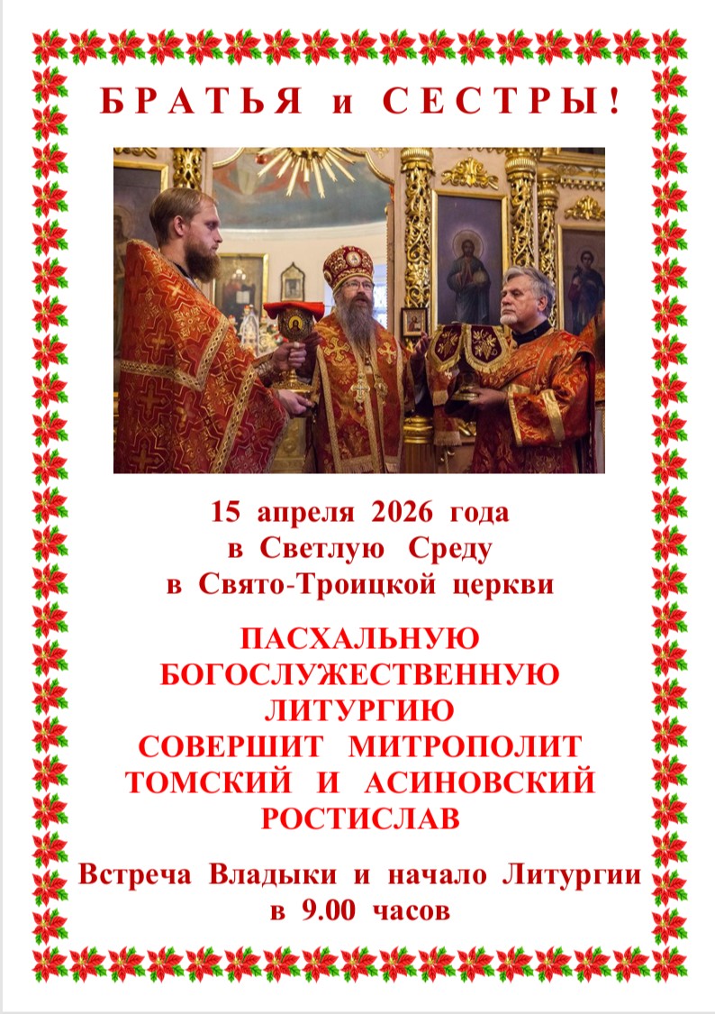 По благословению митрополита Томского и Асиновского Ростислава мероприятие провёл протоиерей Святослав Зулин, настоятель Свято-Троицкой церкви г.Томска. Читать далее