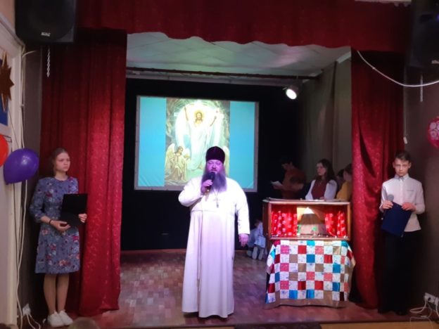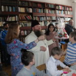 В день Светлой Пасхи двери воскресной школы были открыты для гостей. Разделить пасхальную радость пришли воспитанники и родители, также в гостях были студенты КИПТСУ и учащиеся СОШ №31 . Фольклорная студия «Жаворонки» и старшая группа воскресной школы подготовили кукольно-сценическое представление «Дары Артабана», а после чаепития гостей ждали мастер-класс по изготовлению пасхальной открытки и традиционная пасхальная забава — катание яиц. Праздник посетил настоятель прихода протоиерей Андрей Туров с семьей, матушка Александра испекла для праздничного стола фигурные кексы -овечки, которые вызвали неподдельный восторг у детворы. Христос воскресе!