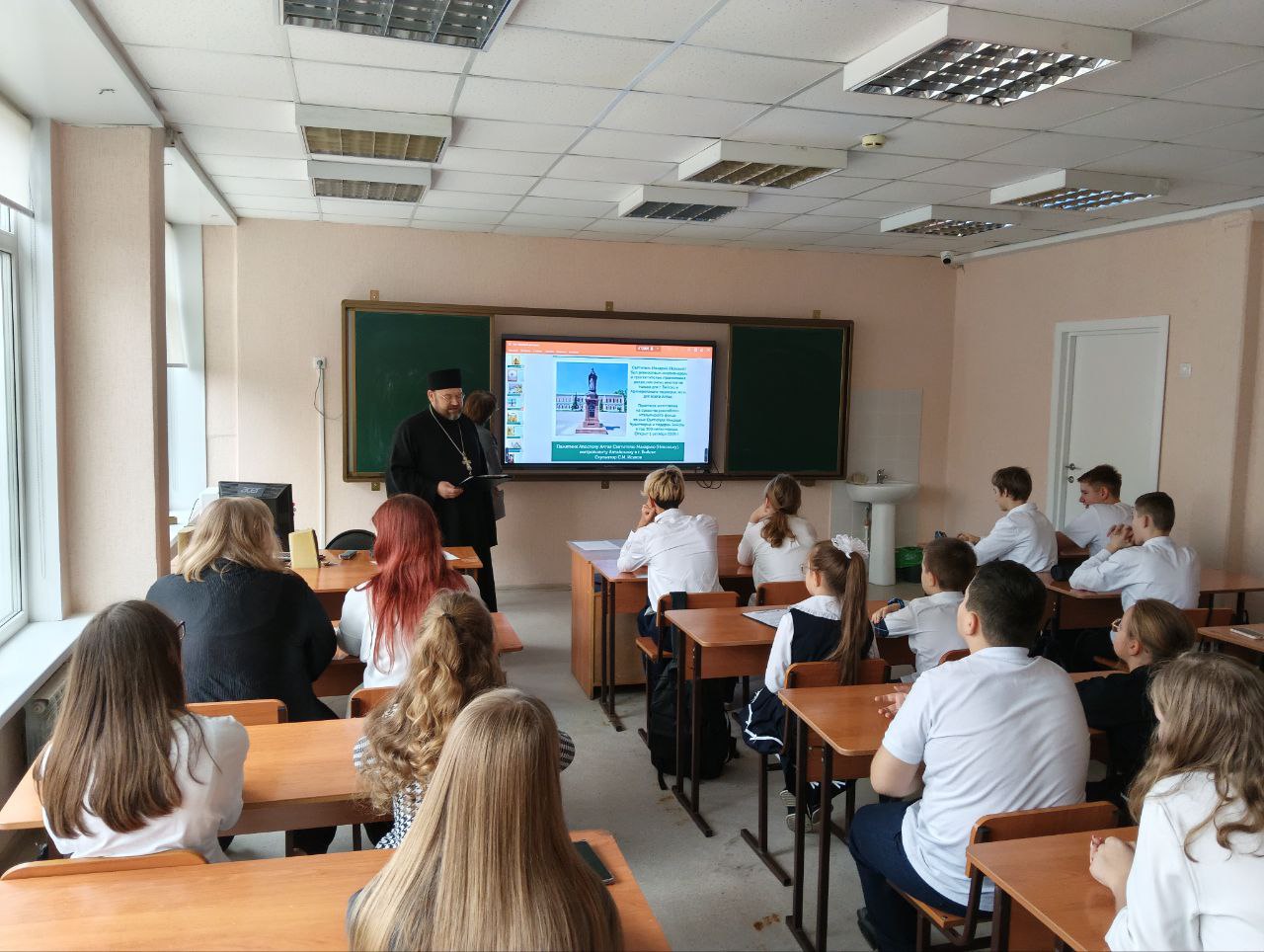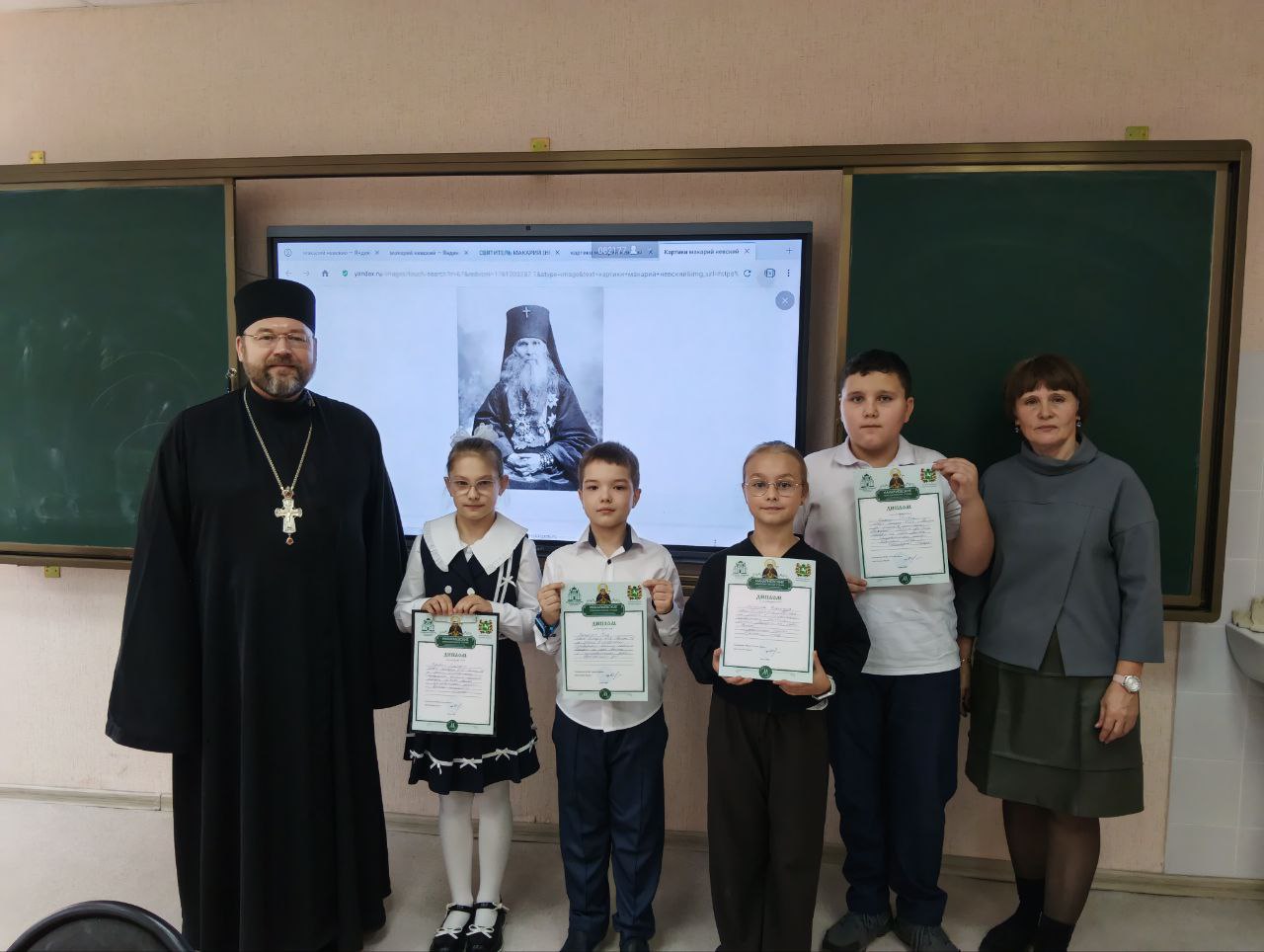 Это вторая встреча отца Святослава со школьниками из запланированного цикла просветительских мероприятий, посвященных святителю Макарию Невскому. Всего предполагается пять встреч разного формата, организованных учебными заведениями совместно с приходом Свято-Троицкой церкви, в разных школах города. Это конференции, открытые уроки краеведения, круглый стол. Встречи проходят в рамках XVIII Макариевских образовательных чтений в преддверии 100-летнего юбилея преставления святителя Макария (Невского).