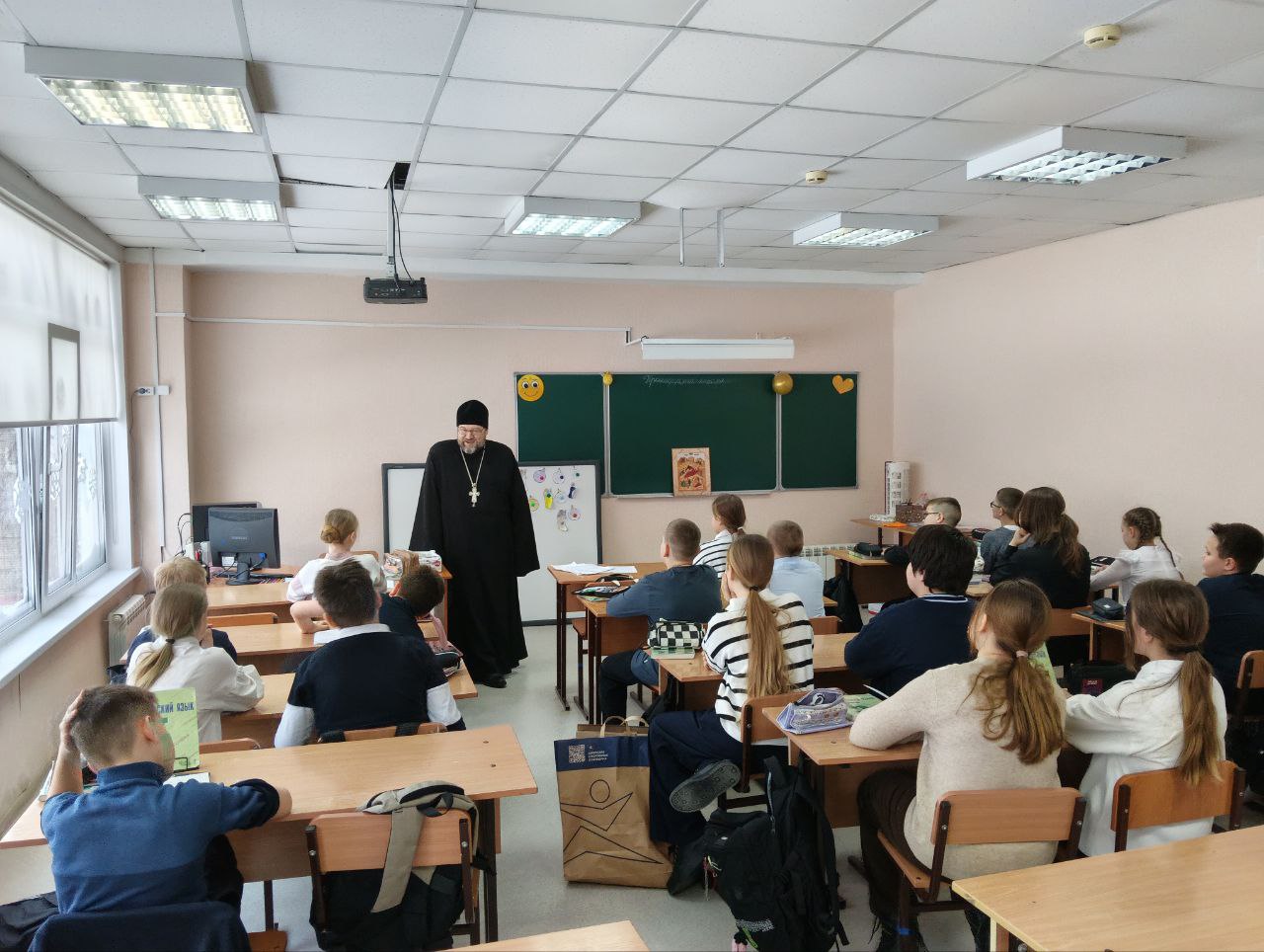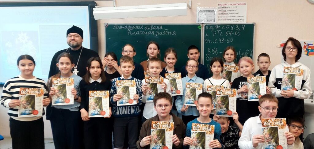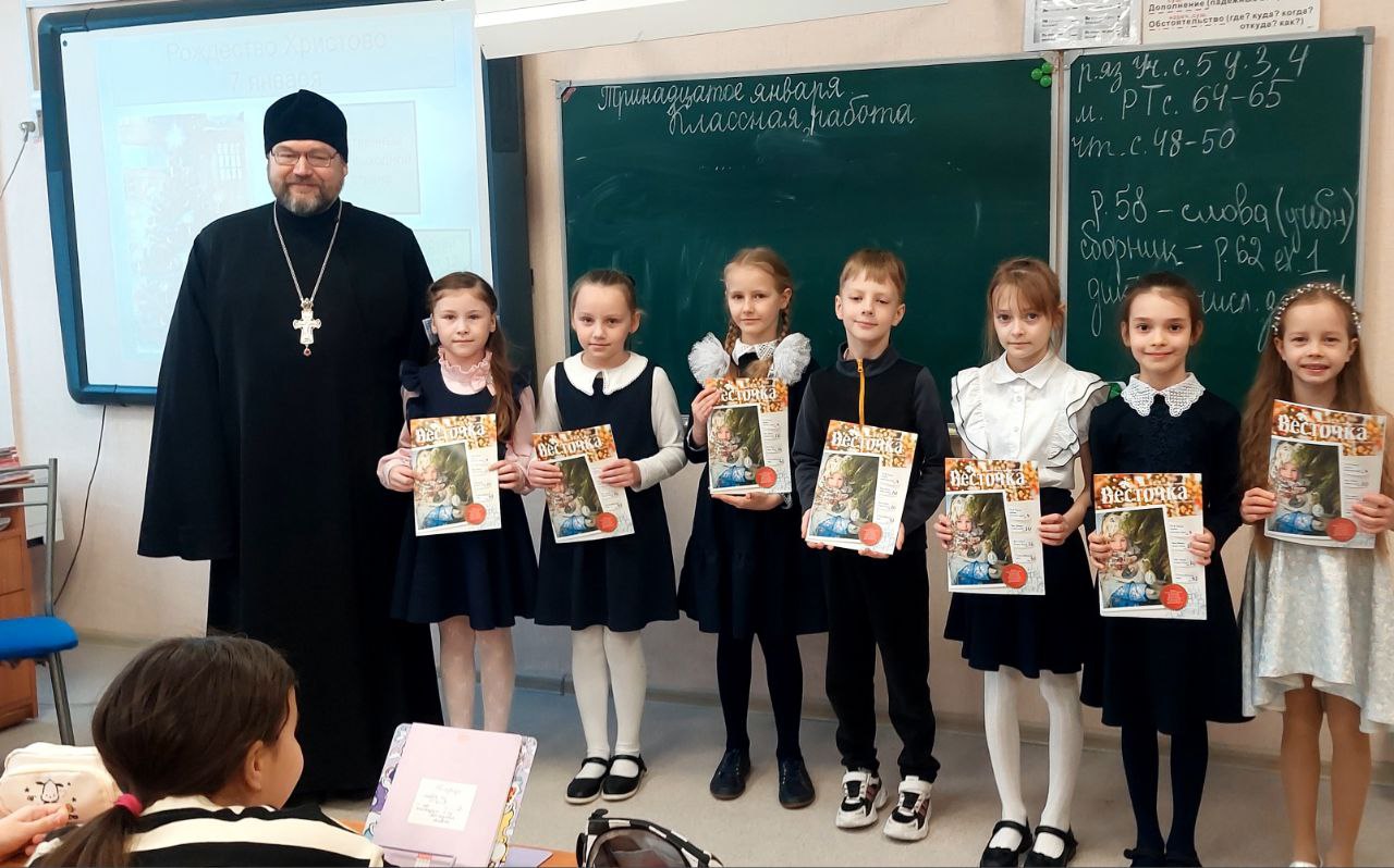 Встречи вышли очень живыми, и ребята и батюшка были открыты для общения, вопросов было много, порой неожиданных, например, «Что чувствует человек во время крещения?». На память о встрече отец Святослав подарил школьникам рождественские выпуски журнала «Весточка» и поздравительные открытки-календарики.