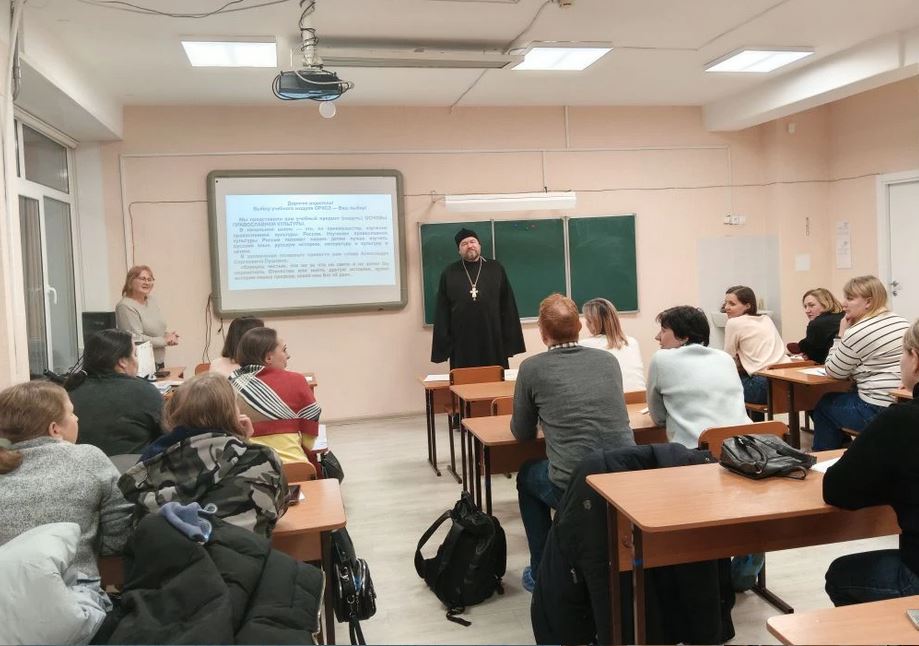 Отец Святослав рассказал родителям о модуле «Основы православной культуры» и обратил внимание на ценность сохранения культурного кода, который в нашей стране зиждется на православии.