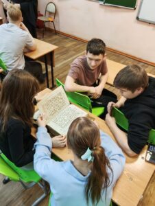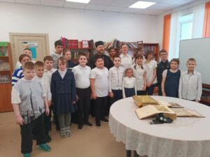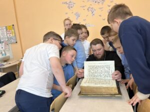 Батюшка привез с собой раритетные книги начала XIX века, ребята с интересом листали и рассматривали страницы — воплощенную историю нашей родной страны.