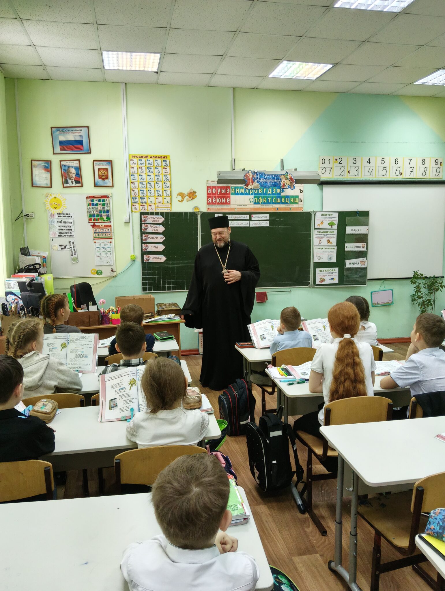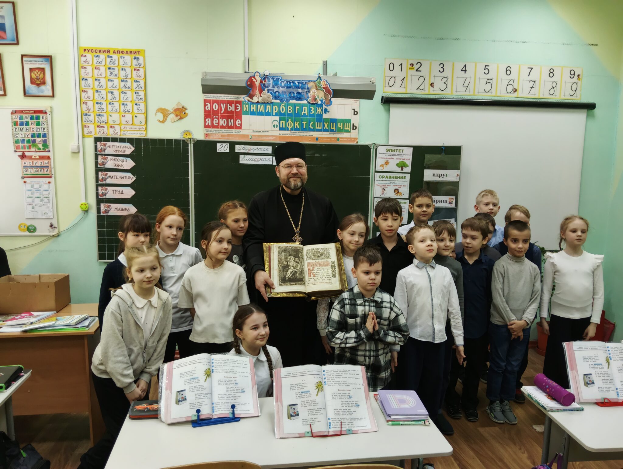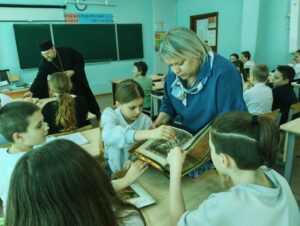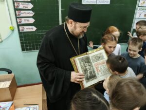 Настоятель Свято-Троицкой церкви протоиерей Святослав Зулин провел еще шесть встреч — 15 марта прошла беседа с учащимися и педагогами школы «Развитие», 18 марта три встречи (в Гимназии №13 — параллель четвертых классов, а 20 марта две беседы в МАОУ СОШ № 31(2″Б» и 11″А» классы). Отец Святослав рассказывал об истории книгопечатания на Руси, о роли Церкви в образовании и просвещении русского народа. Иллюстрацией бесед служили старинные прекрасно сохранившиеся издания Евангелия и Псалтири. Встречи вызывали живой интерес как у малышей, так и у учеников выпускного класса