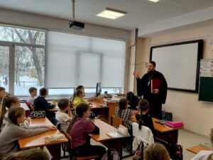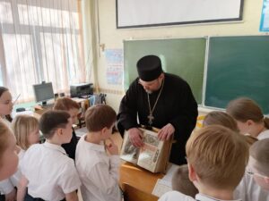 Священники Свято-Троицкого храма провели цикл встреч, посвященных празднованию Дня православной книги, со школьниками Октябрьского и Советского района.