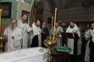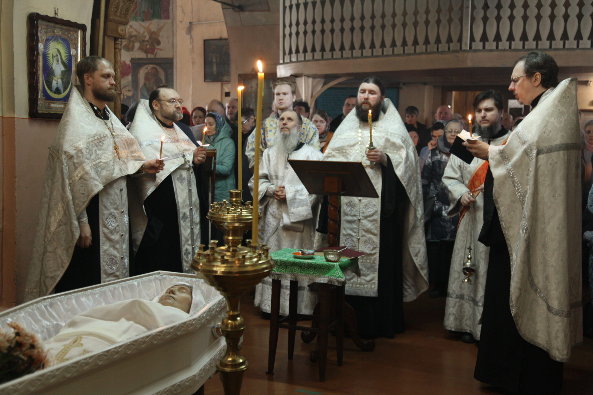 Чин отпевания возглавил благочинный Градо-Томского благочиния Томской епархии настоятель храма святого благоверного князя Александра Невского протоиерей Сергий Никаноров, которому сослужили настоятель Свято-Троицкой церкви г.Томска протоиерей Святослав Зулин, настоятель храма святого праведного Феодора Томского протоиерей Дионисий Пучнин, настоятель Покровского храма с.Петухово иерей Сергий Шитиков, а также священнослужители в диаконском чине: клирик храма благоверного князя Александра Невского Роман Штаудингер и клирик Свято-Троицкой церкви Роман Чиорня.